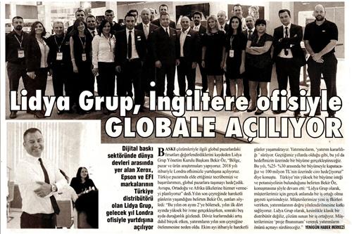 Türkiye pazarında kazanılan tecrübe ve başarıları global pazarlara taşımayı hedefleyen Lidya Grup, 2017 yılında İngiltere ülke ofisini açarak, global ölçekte de çalışmalarına devam etmektedir.